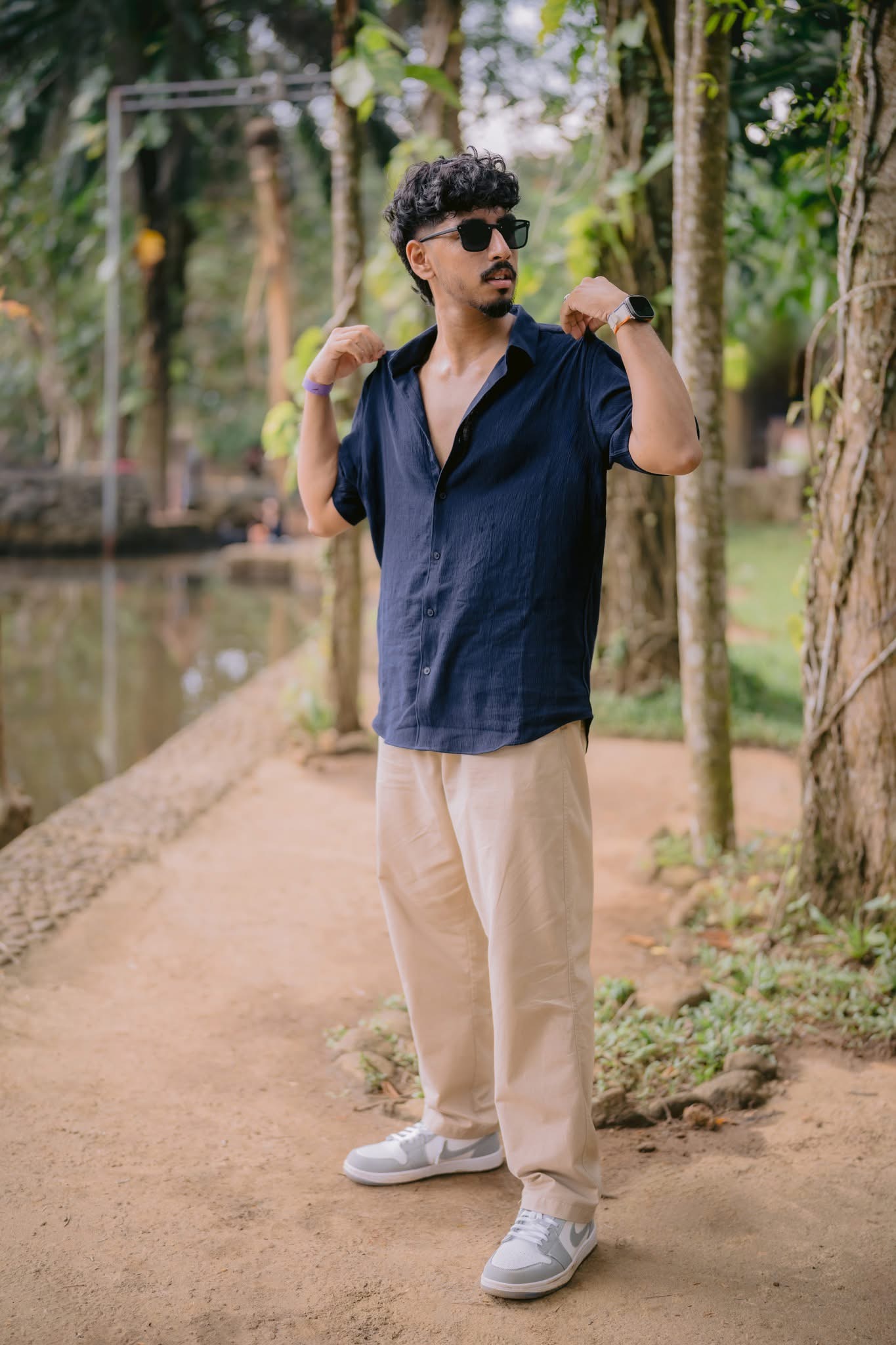 Garden walk is easy; mine edge has uneven ground; tree house requires stairs